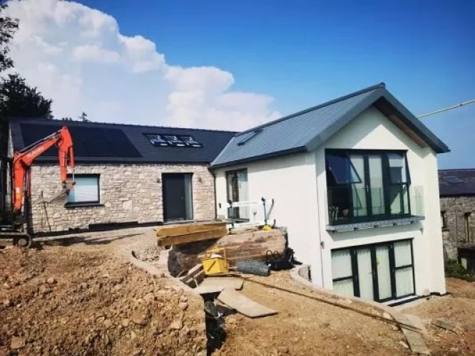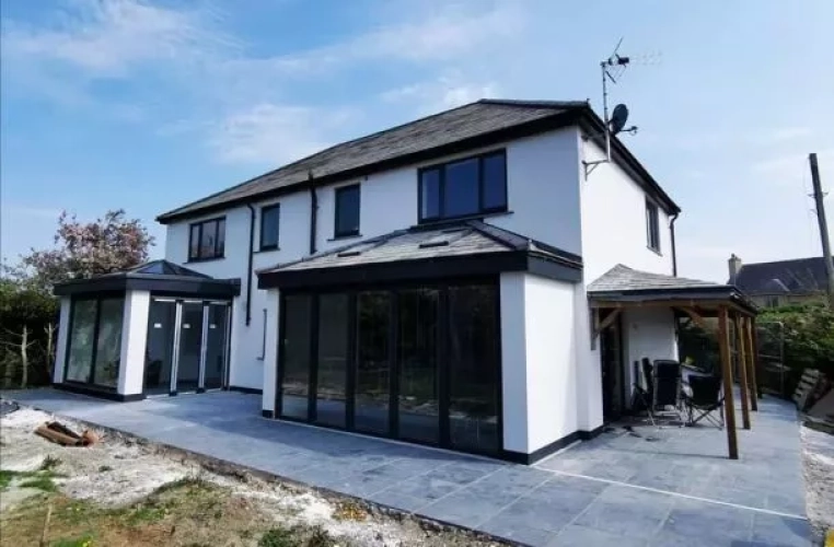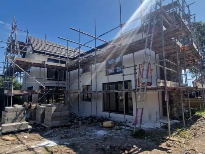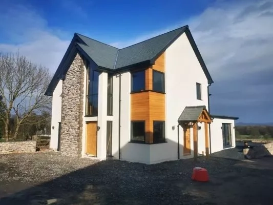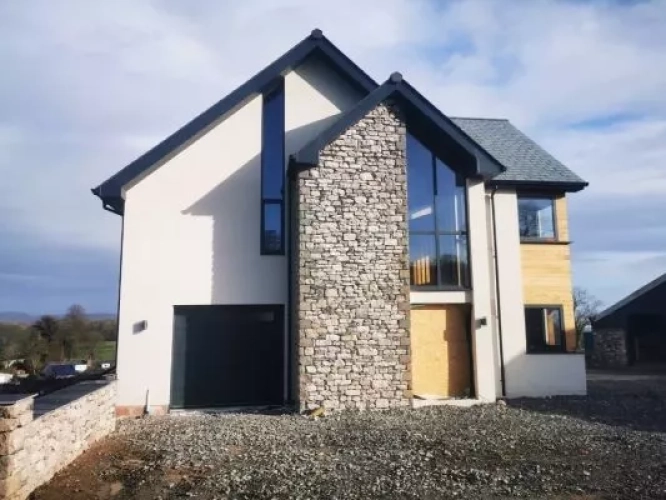 Luxury one off new build, with sprayed through-coloured monocouche render system