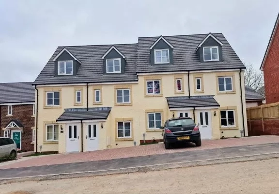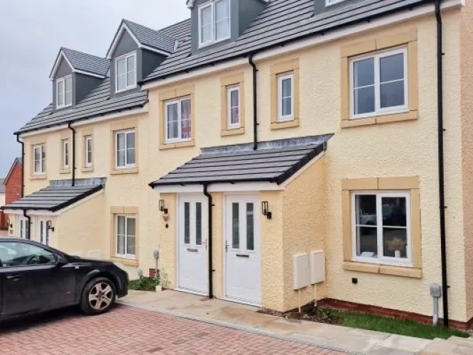4 New build properties, Monocouche render system with Roughcast finish for Rayner Rowen