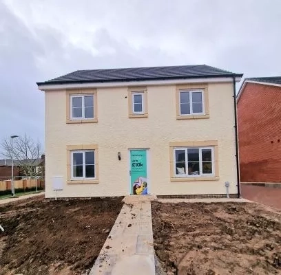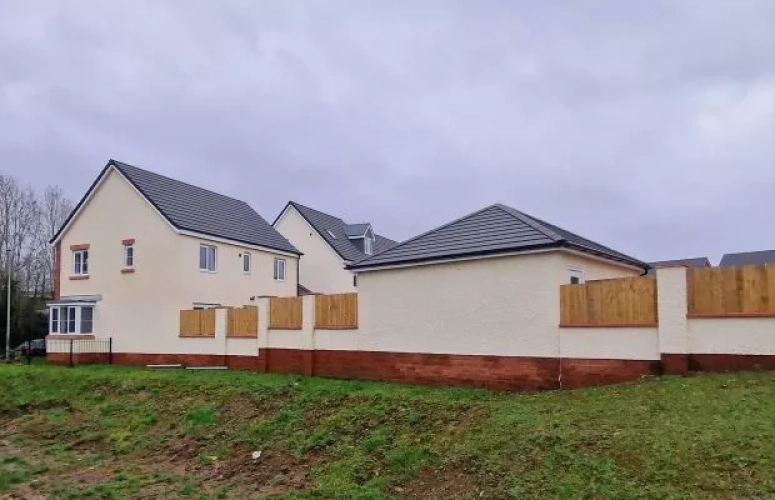 New build development using K-rend Monocouche render system with roughcast finish for HBP
