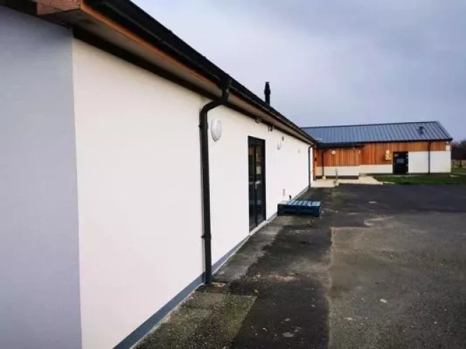 VPI Monocouche render system on Cavendish Park sports center for Ocean Construction Ltd